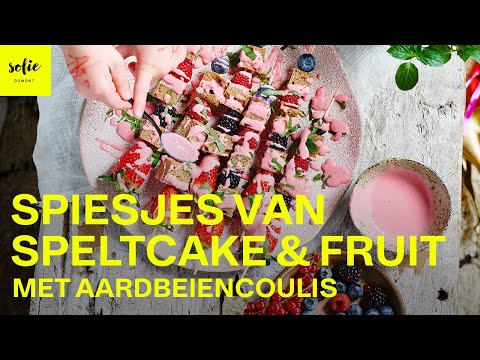 Spiesjes van speltcake en fruit met aardbeiencoulis - Speltcake - Die kleine mannen een ganse vakantie bezighouden, ja ja, we kennen het... Samen bakken is altijd een goed idee! Deze brochetjes zijn lactose vrij en met ...