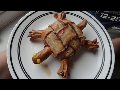 How to make a Turtle Burger - Turtle Burger Recipe - How to make a Bacon-wrapped Turtle Burger: http://www.mightysweet.com/mesohungry/2010/09/07/rusty-makes-turtle-burger/ Music: Justice of the Unicorns ...